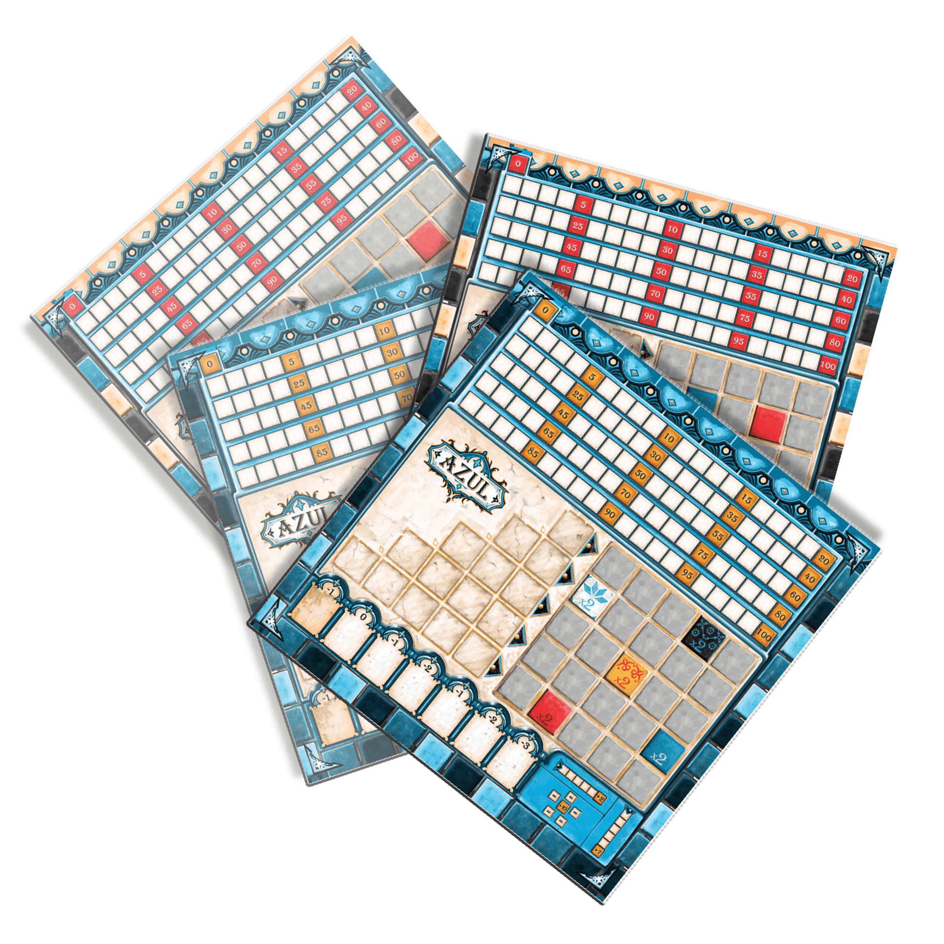 Extensia Azul - Mozaicul de cristal îmbunătățește experiența de joc prin oferirea unui aspect organizat, curat, pe planșele jucătorilor. Planșele cu două fețe, nou concepute, care se regăsesc în cutia jocului, oferă provocări interesante chiar și pentru cel mai împătimit fan Azul!